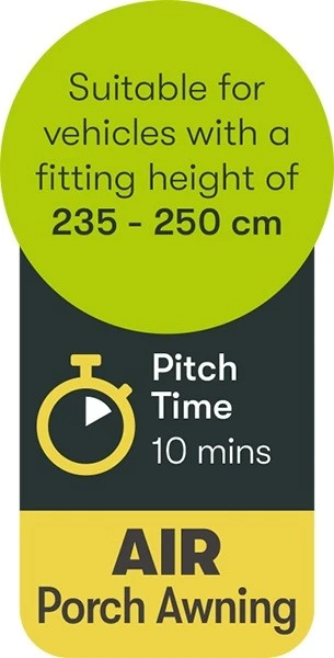 The Falcon Air Technology (FAT) system gives you a single main beam which only takes a minute to inflate and even less to deflate ! The airbeam is help in place by a reinforced sleeve which is then secured to the awning via another zipped sleeve making this extremely strong and reliable. The added storm straps give you added ground anchorage and protection from the wind and means you dont have to spend extra money on accessories.